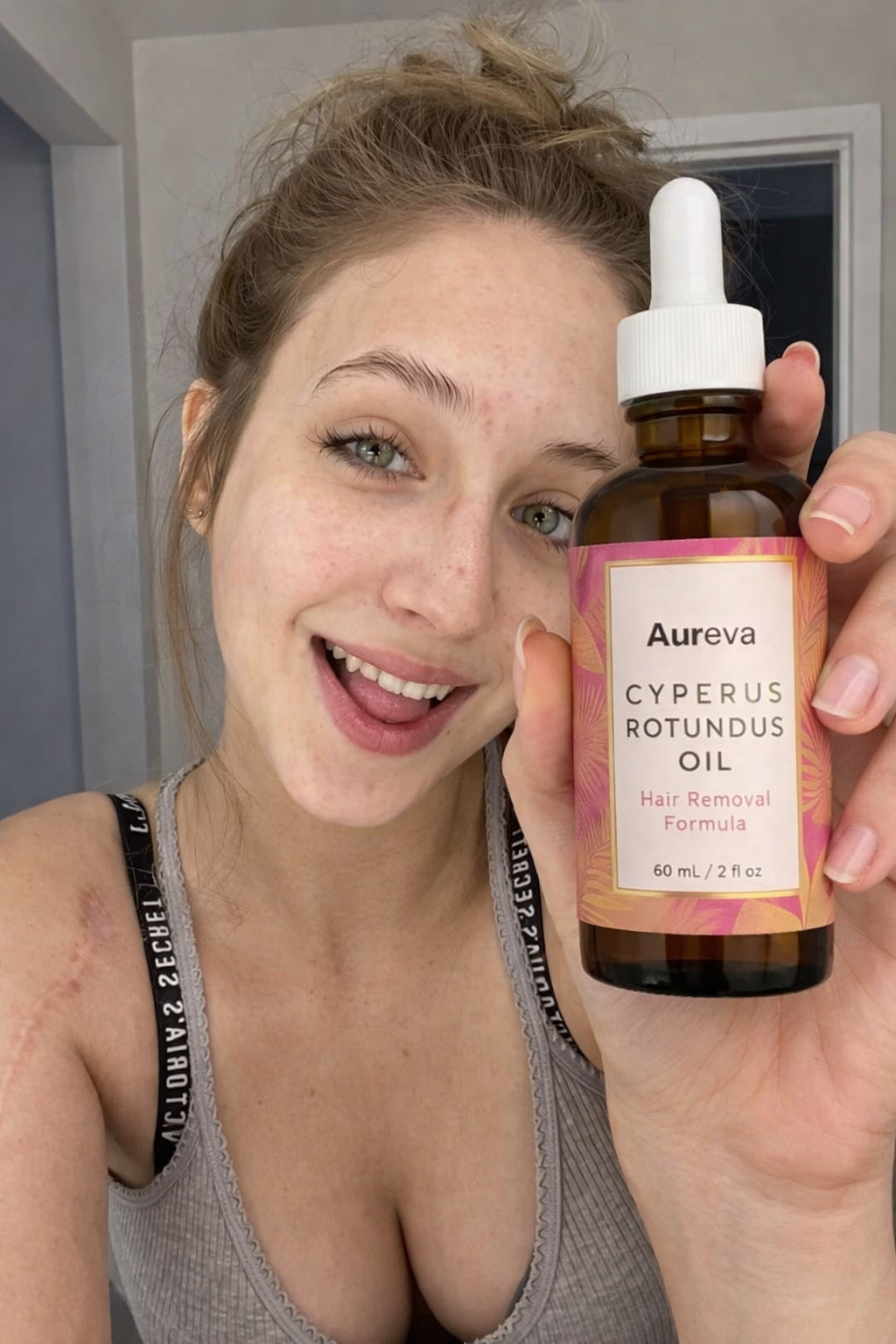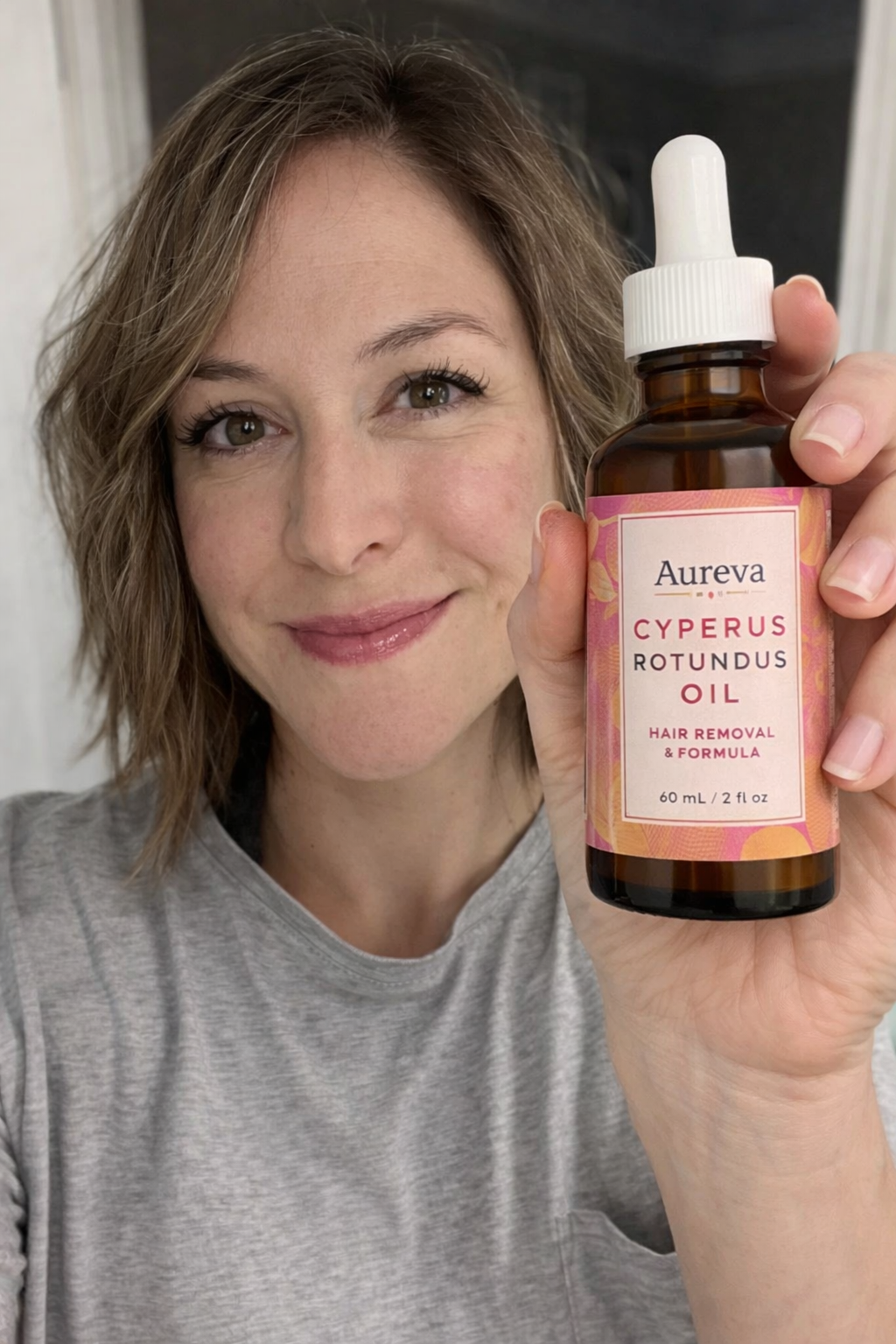 Aureva uses Cyperus Rotundus oil, a plant-based ingredient known for helping slow unwanted hair regrowth over time. With consistent use, hair can grow back thinner, softer, and less frequently, while the oil also helps keep skin smooth and hydrated.